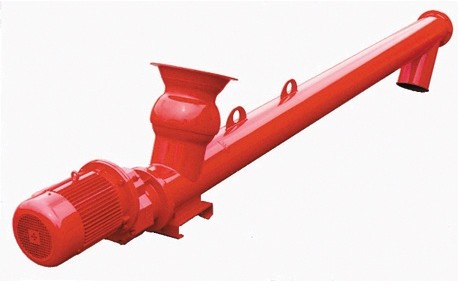 螺旋管輸送機是在圓筒形機殼內焊有連續(xù)的螺旋葉片,機殼與螺旋葉片一起轉動。加入的物料由于離心力和摩擦力的作用隨機殼一起轉動并被提升后,在物料的重力作用下又沿螺旋面下滑,使物料隨螺旋管一起旋轉從而實現(xiàn)了物料的向前移動,如同不旋轉的螺桿沿著轉動的螺母作平移運動一樣,達到輸送物料的目的。